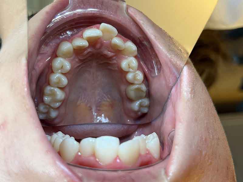 Face à ce tableau clinique, OrthoLight choisit une plaque d'expansion palatine — un appareil amovible fabriqué sur mesure à partir d'une empreinte de l'arcade supérieure. Ce n'est pas un appareil fixe. C'est une intervention légère, précise, et parfaitement adaptée à la fenêtre de croissance de cette patiente.
